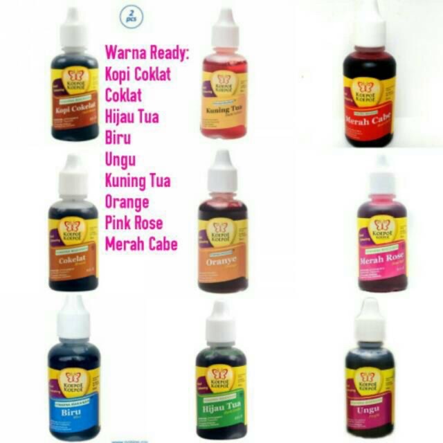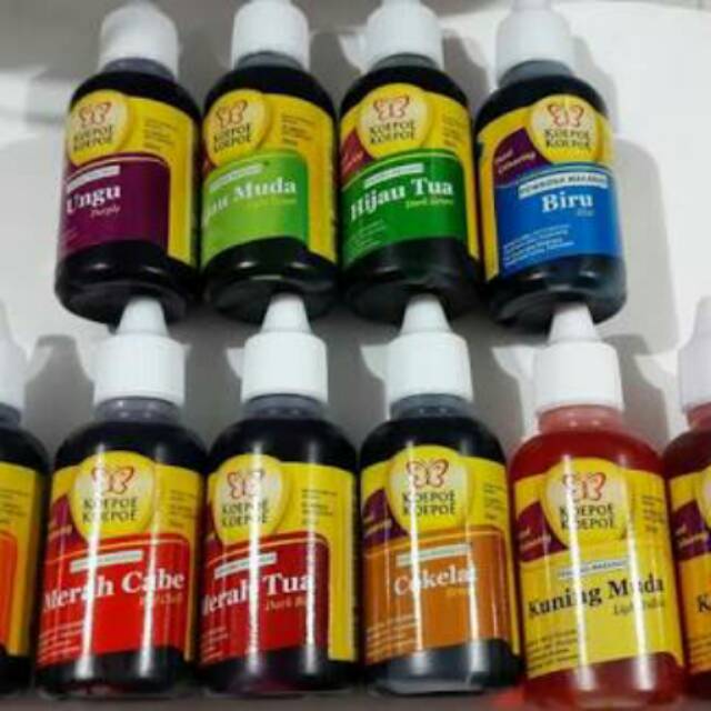 Senin 21 November 2016. 5 Merk Pewarna Makanan Yang Aman Dan Bagus. KOEPOE KOEPOE Pewarna Makanan Lengkap KUPU KUPU Food Coloring All Col Rp2999 Jakarta Barat sekaiimart 49 Terjual 3 rb Ad PEWARNA MAKANAN KOEPOE 30ML PART1 Rp3999 Tangerang Selatan keep_smiling 49 Terjual 1 rb Ad Pewarna Makanan Koepoe-Koepoe Aneka Warna 30ml Rp3800 Cashback Surabaya Supplier Bumbu Surabaya 50 Terjual 250 Ad.